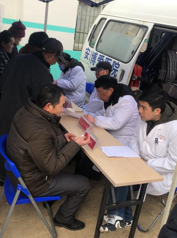 三九寒天,寒风格外刺骨,室外温度已经降到零下。但凛冽的寒风,挡不住安庆博爱医院专家送温暖的脚步。1月13日,安庆博爱医院与安庆广播电视台公共频道《热线800》联合开展的公益活动“博爱”健康体检公益行,在博爱医院党总支书记、副院长潮家宽的带领下,来到杨桥镇螺山村开展免费义诊服务。